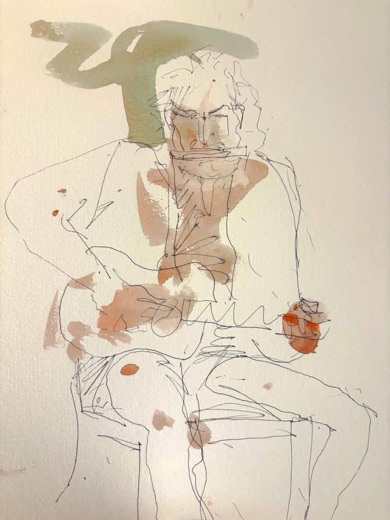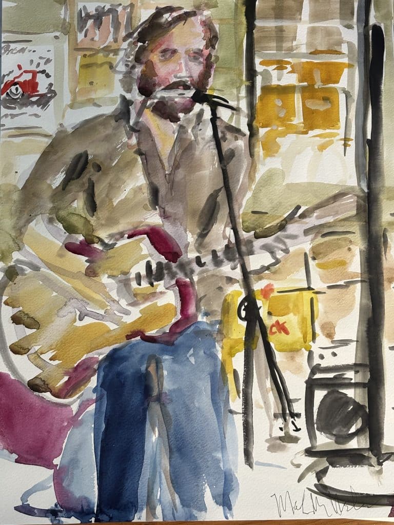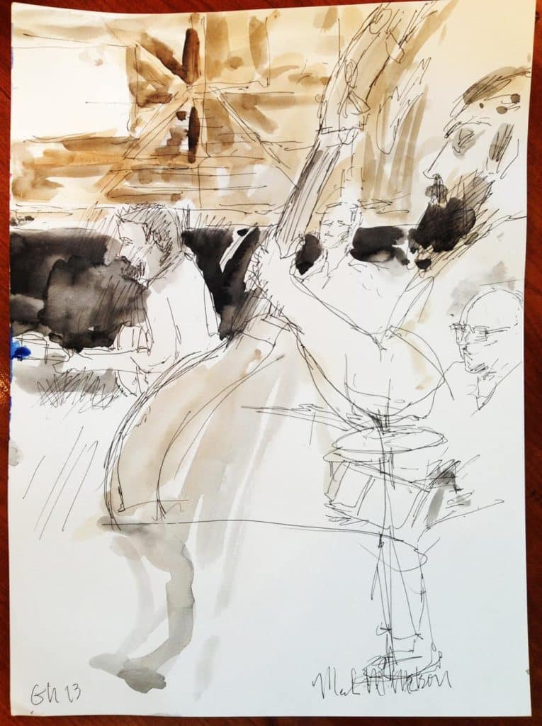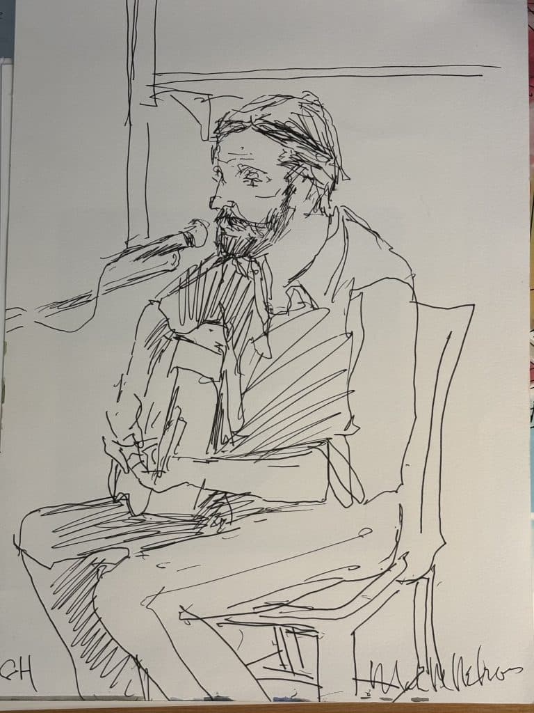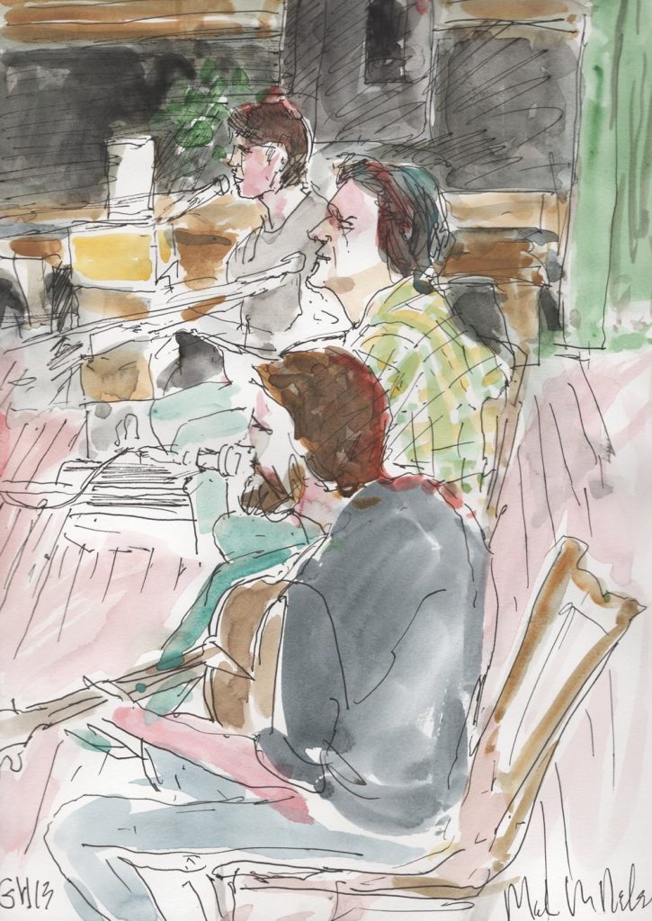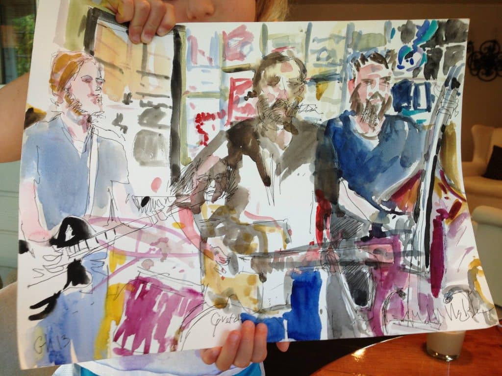 Master watercolorist Mark Nelson shared his sketch of me and of Ray Wylie Hubbard at KNBT’s Roots and Branches taping (the show airs on 1/27). I learn so much every time I see his work.
